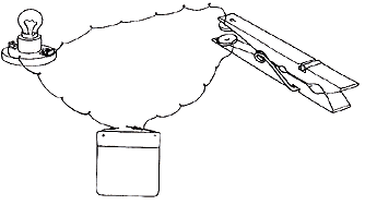 Draai een stukje draad om een spijker en zet deze tegen een pool van de batterij.